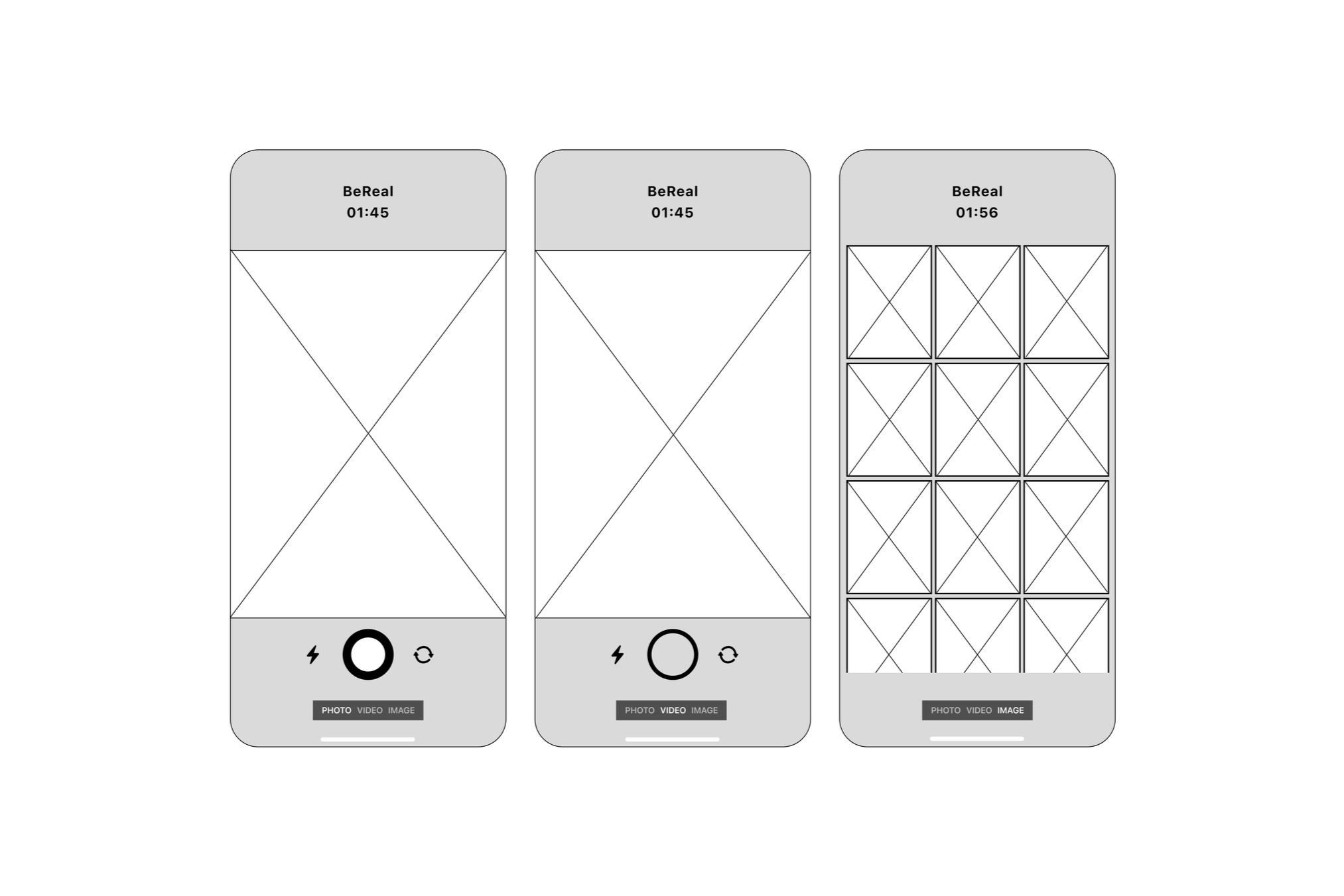 I translated paper sketches into Figma wireframes, maintaining fidelity to both UX and BeReal’s visual identity. Every spacing, icon choice, and interaction flow was carefully considered to reflect BeReal’s minimalist and authentic aesthetic
